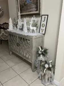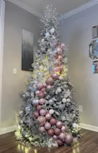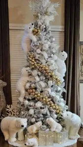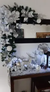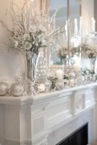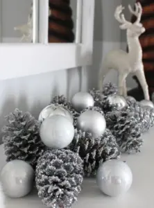 A home decorated in silver tones instantly feels like a winter wonderland. Start with a white or natural Christmas tree and adorn it with silver ornaments, frosted pinecones, satin ribbons, and crystal snowflakes. Add white LED lights for a soft, icy glow.
