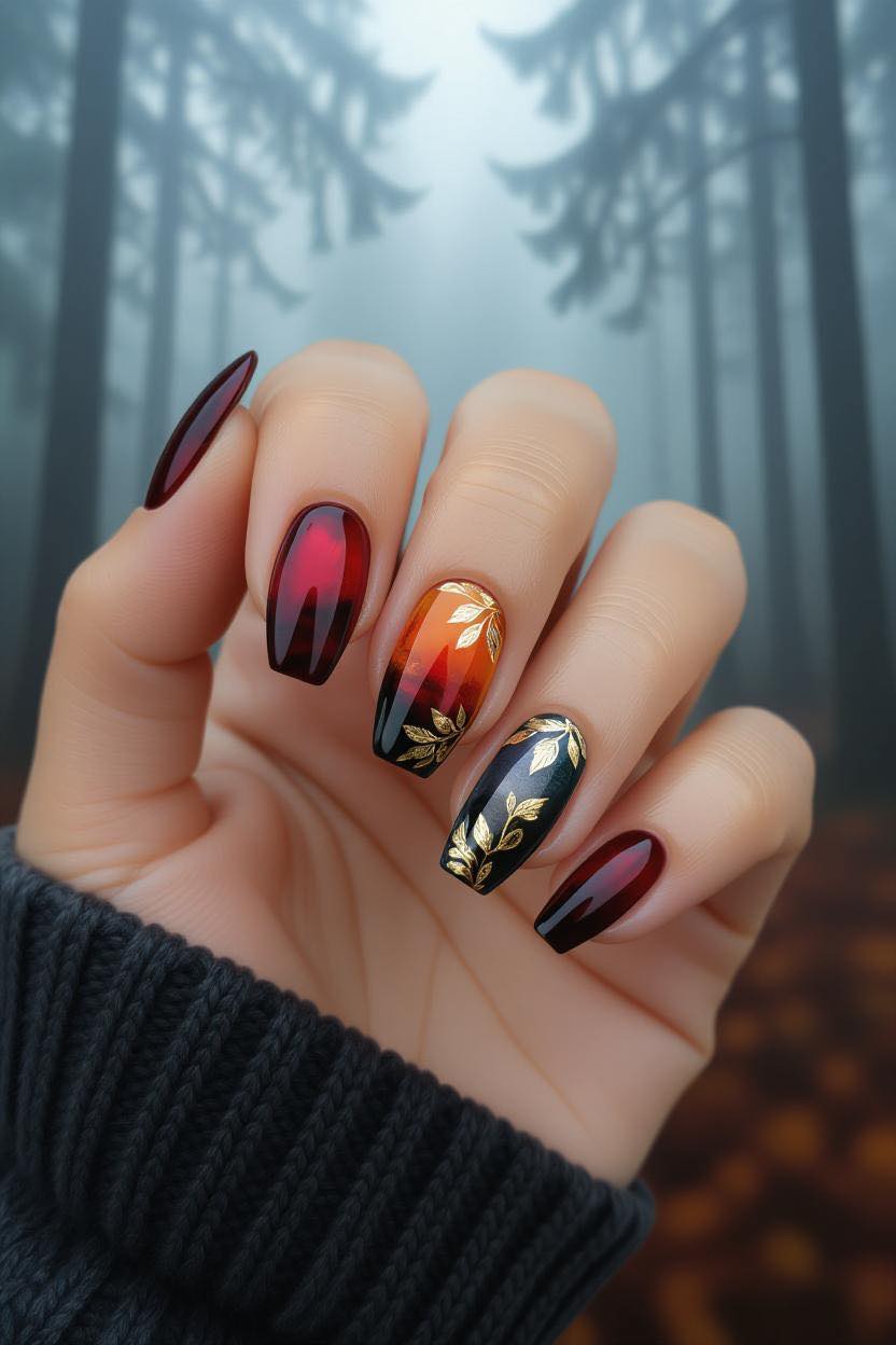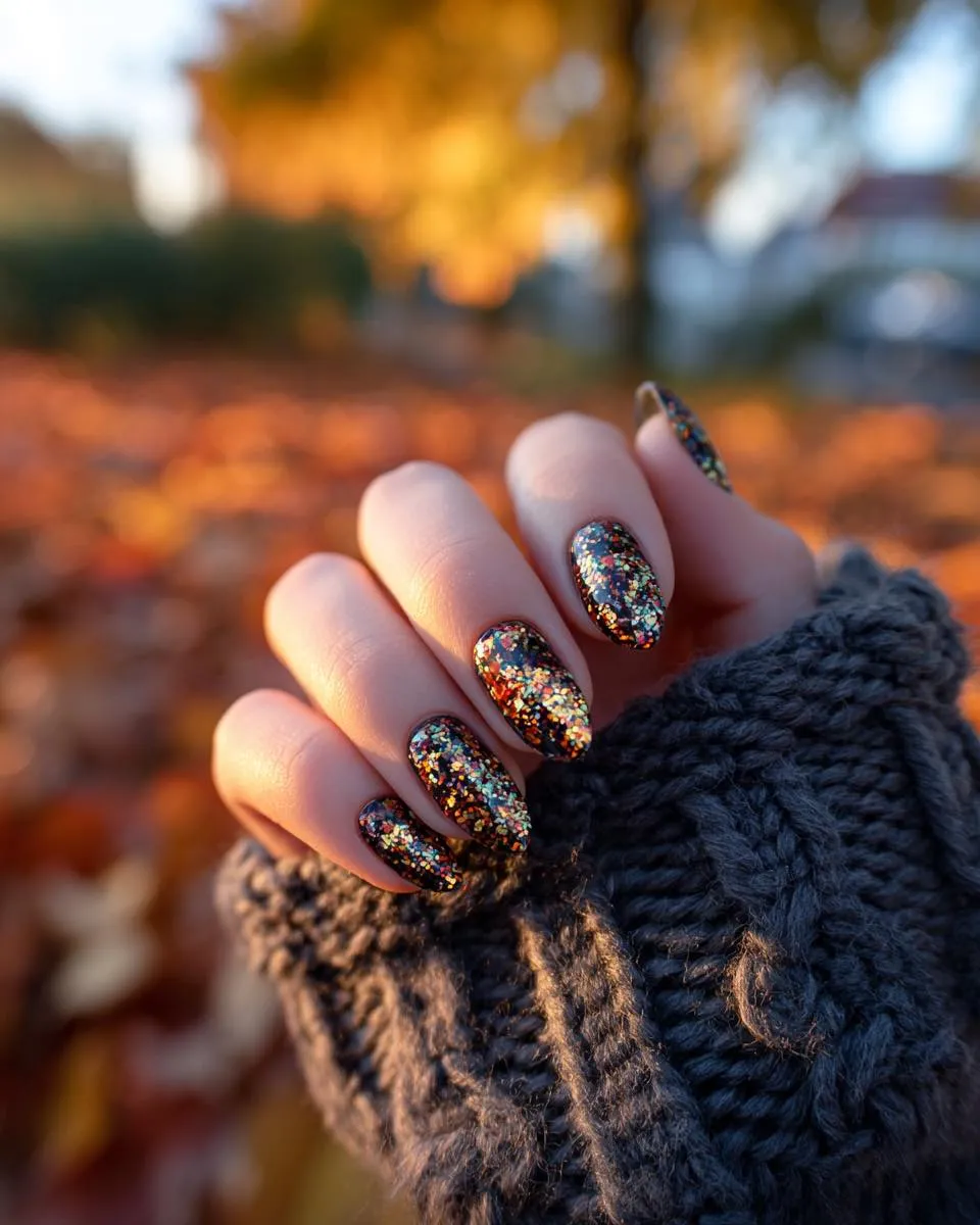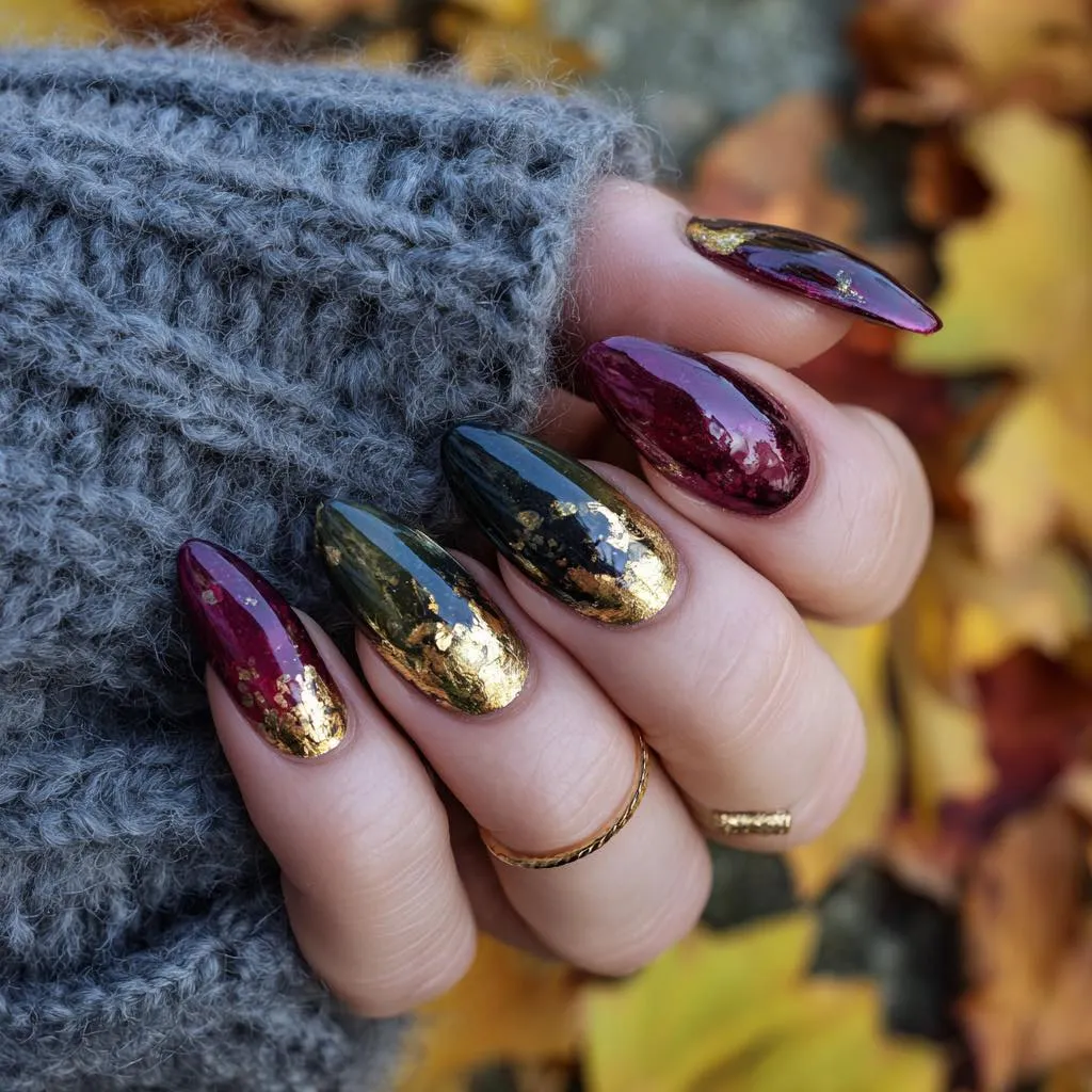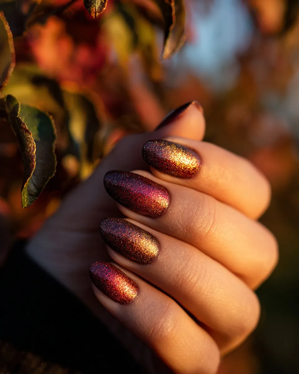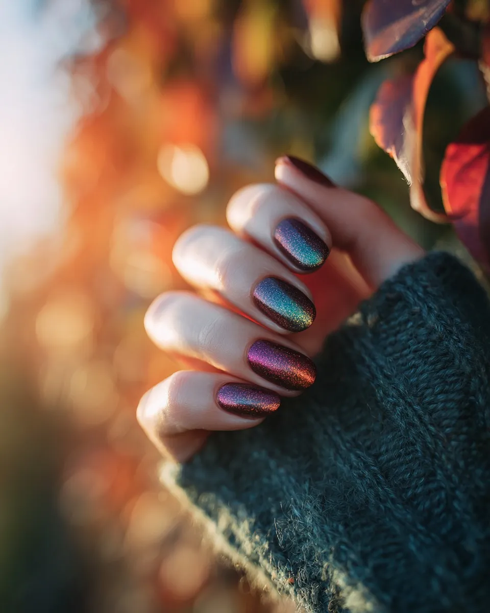 Silver nails are trending this Christmas — from chrome tips to glitter gradients and snowflake art, this tone never goes out of style. For a minimalist look, try french tips with metallic edges or mirror-effect polish.
